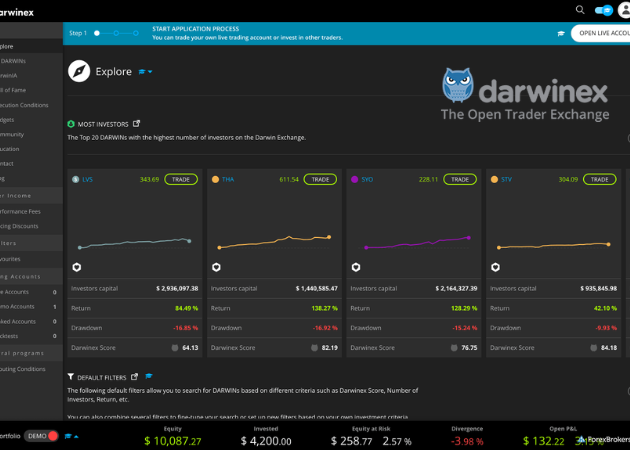 DARWINs reproduzieren Ihre Leistung, ohne Ihre Trades preiszugeben, wodurch Ihr geistiges Eigentum geschützt wird. Auch hinsichtlich des Risikos sind diese völlig vergleichbar, was die DARWIN-Börse für Anleger und Investoren zu einem Umfeld mit gleichen Wettbewerbsbedingungen für Startkapital und Investorenkapital macht.