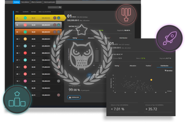 Das Seed Allocation-Programm, DarwinIA, nutzt innovative Algorithmen, veröffentlicht Ranglisten und Rangkriterien, damit die Teilnehmer miteinander verglichen werden können. Darwinex setzt die besten Leistungsträger ein und zahlt bis zu 15 % des Gewinns aus.